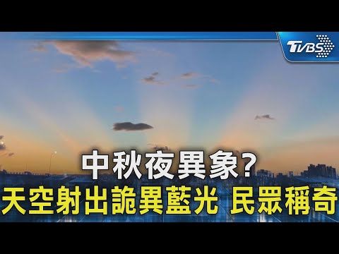 中秋連假期間,不少民眾發現天空出現了一道道詭異的藍色光束,在夕陽餘暉下十分醒目
