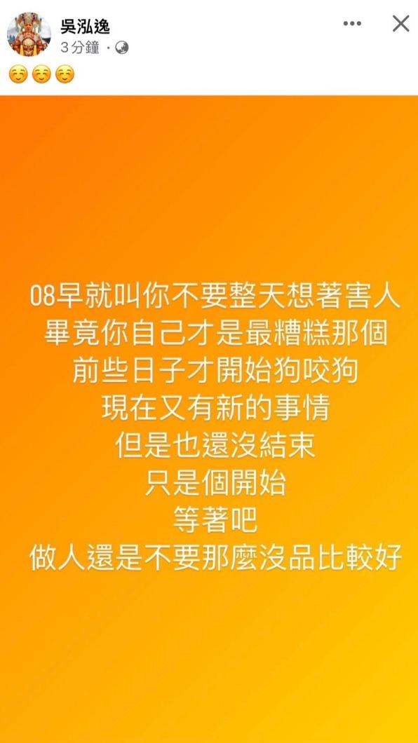 )日又忍無可忍,在臉書PO出一段話,「早就叫你不要整天想著害人,畢竟你自己才是最