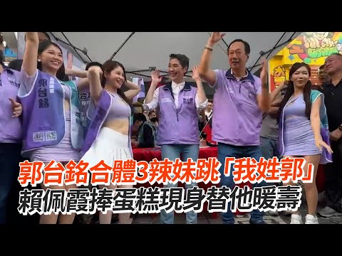 大唱生日快樂歌。2人也在3名爆乳妹帶動下,一同跳唱「我姓郭」熱舞。