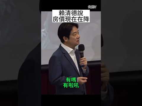 賴副總統表示:「你有沒有注意到房價現在在降?有嗎 有拉吼。」