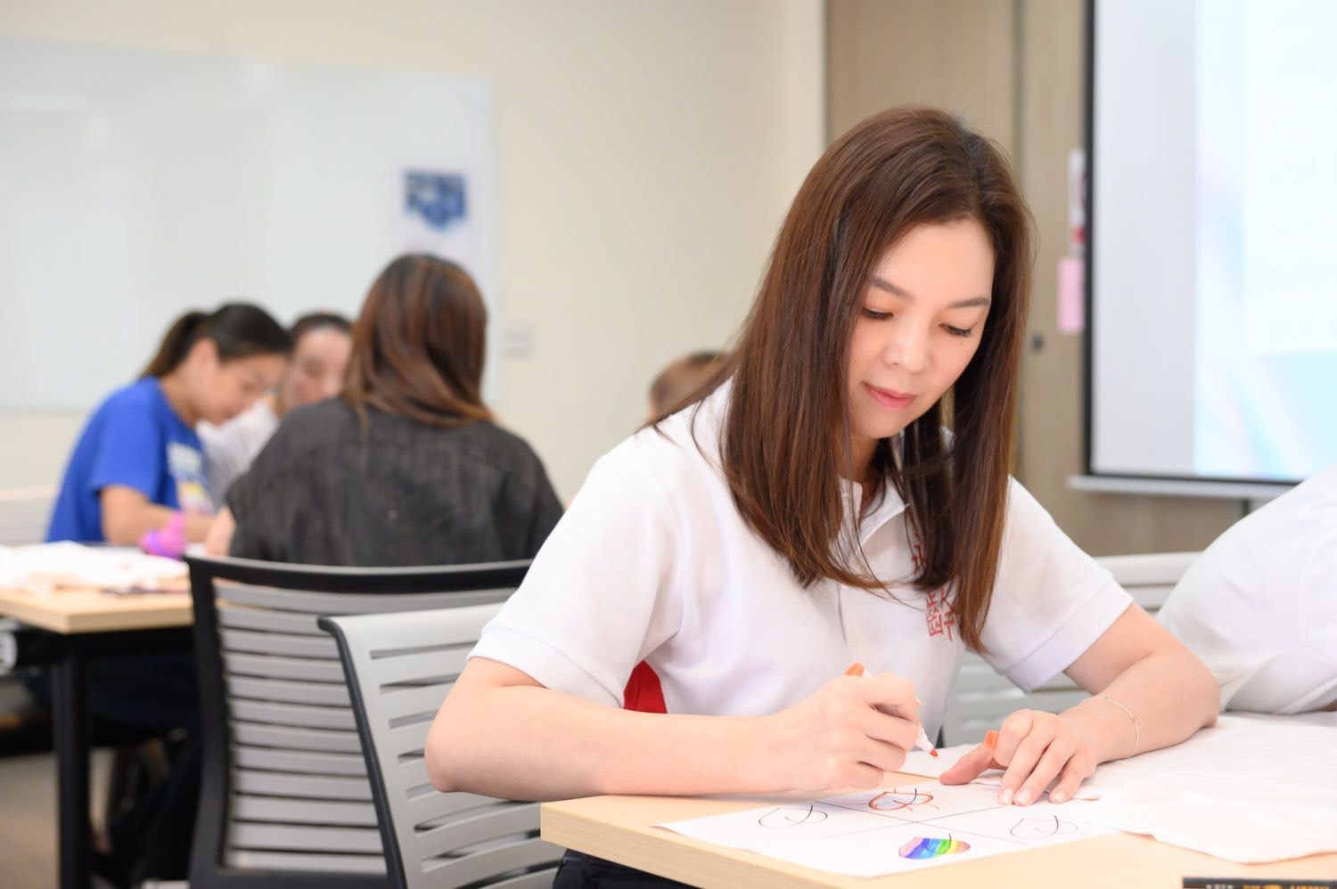 日云老師延續活動發起人曾馨瑩拋出的創意種子,帶著學員以「愛與美好」為創作原點,