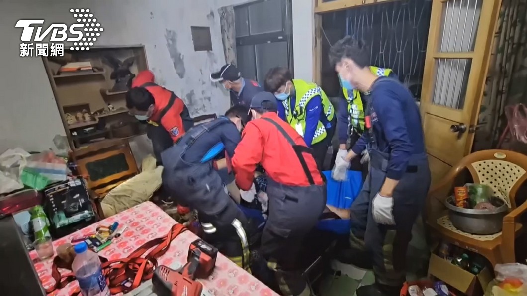 只是三層樓透天,住了四兄弟,卻因為堆滿雜物無法順利進出,改用吊掛方式救人,事後