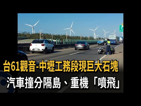 獨家!台61觀音-中壢工務段現巨大石塊 重機慘撞「噴飛」 - 民視新聞網
