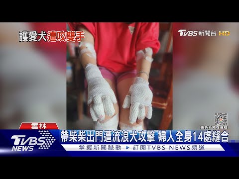 雲林一名婦人出門遛狗卻慘遭流浪狗攻擊,手腳多達14處縫合,肇事的惡犬脖子有領圈,