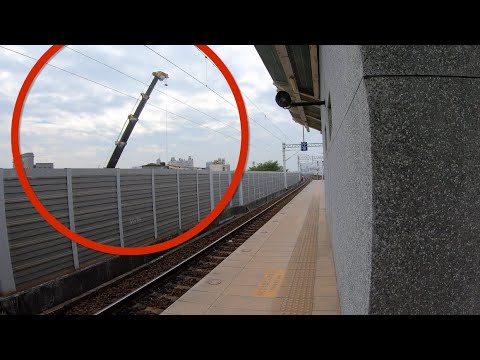 台鐵潮州站鐵道外今天也有高吊吊掛作業很接近鐵道範圍只有五步距離