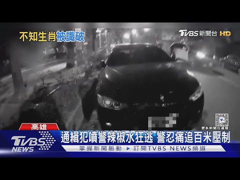 員警忍著疼痛猛追,偏偏他還持續攻擊,員警也祭出辣椒水反擊!