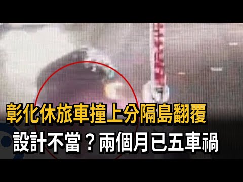 彰化田尾鄉一處路口,一台黑色休旅車撞上分隔島,翻覆180度,