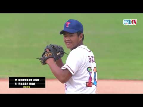 張善政說,今日的開球投手,是新明國中的范宸竣同學;鮮少擔任打者的自己,其實有點小