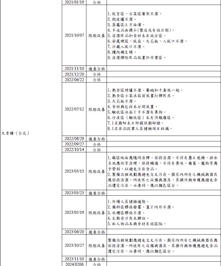 攪肉機生鏽、備料區膠條發霉等;米其林三星餐廳「君品頤宮」稽查12次5次不合格、「