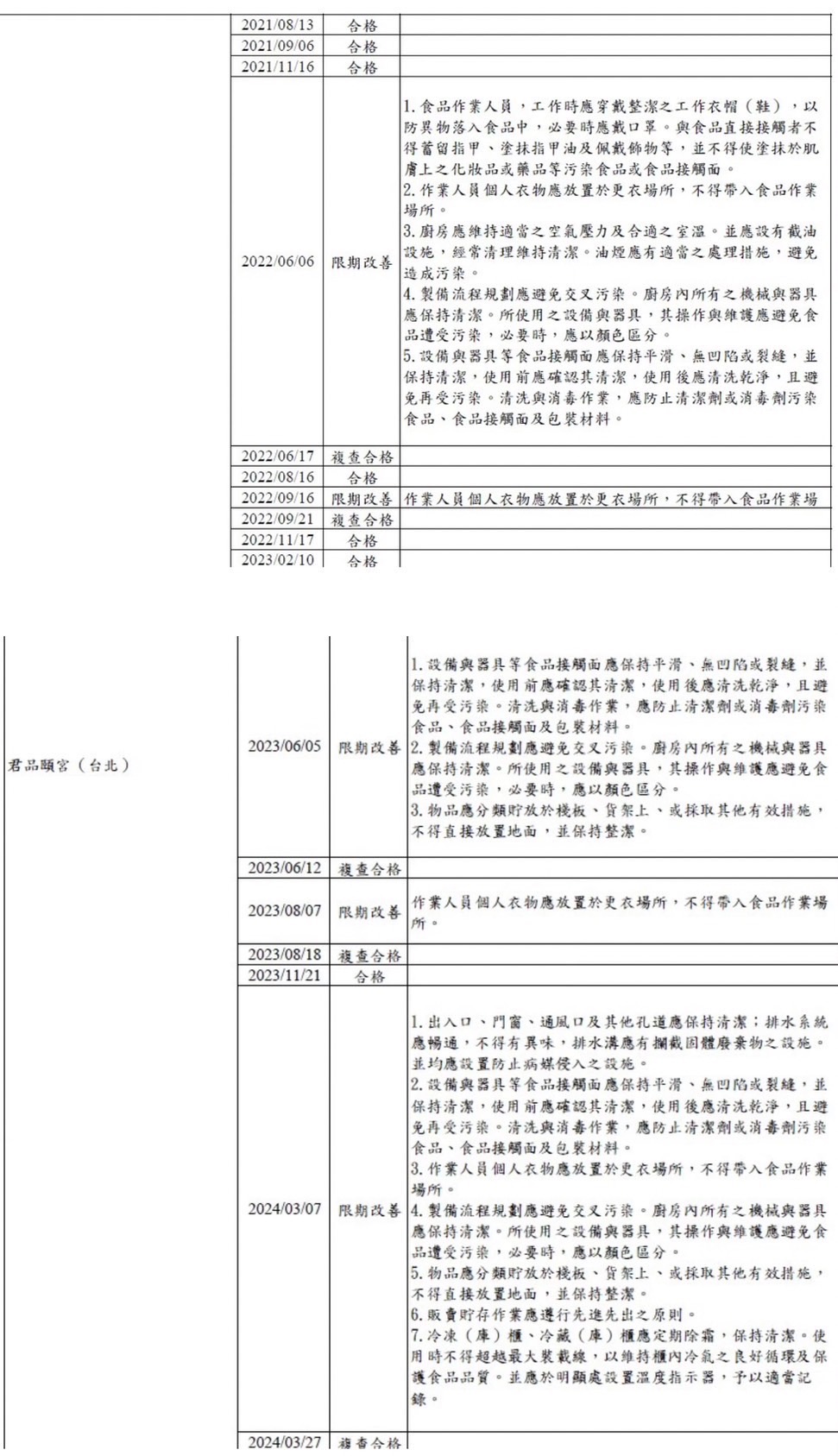 米香、A Cut等米其林餐廳在內,近四年來多次衛生稽查不合格;素食店家食安也亮紅燈
