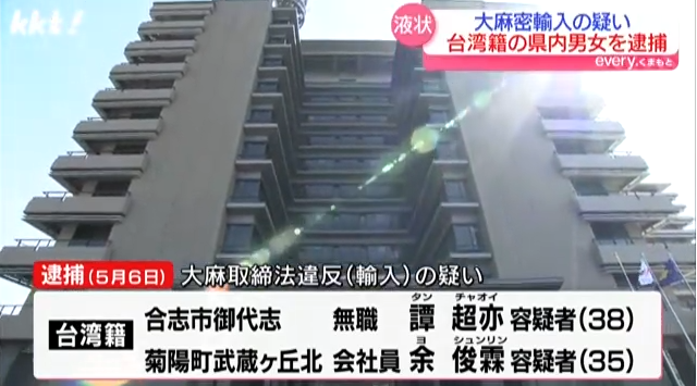 作者 flymyfinger (鍵盤時事評論員)標題 [新聞] 液態大麻藏包裹寄熊本 2在日台人被捕時間 Wed May 22 20:22:11 2024