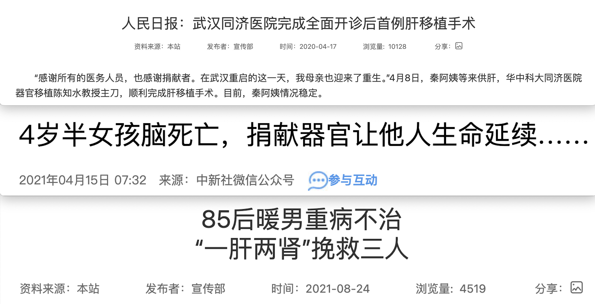 實際上,上述官方報導僅僅是器官移植病例的冰山一角。