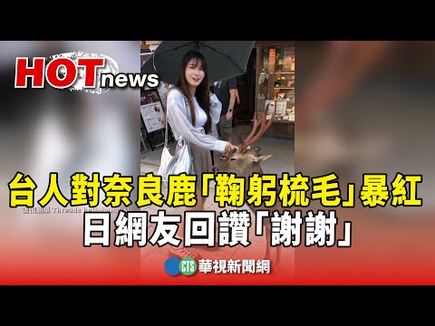 自己喬角度磨蹭,讓女遊客笑說連鹿餅都沒買就收服30-40隻鹿。這段梳鹿頭的畫面爆紅