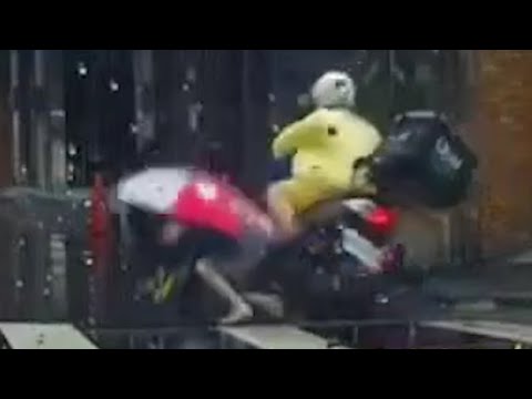 誇張的是一名外送員載著小孩,疑似視線被擋住,竟直接撞上男童,三人紛紛倒地,所幸拿