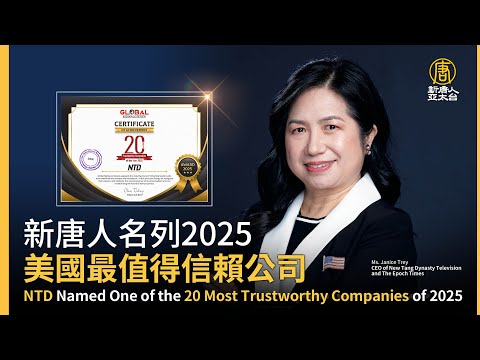 《全球光輝評論》最新評選出了20家2025年度最值得信賴的公司,新唐人電視台位列榜首
