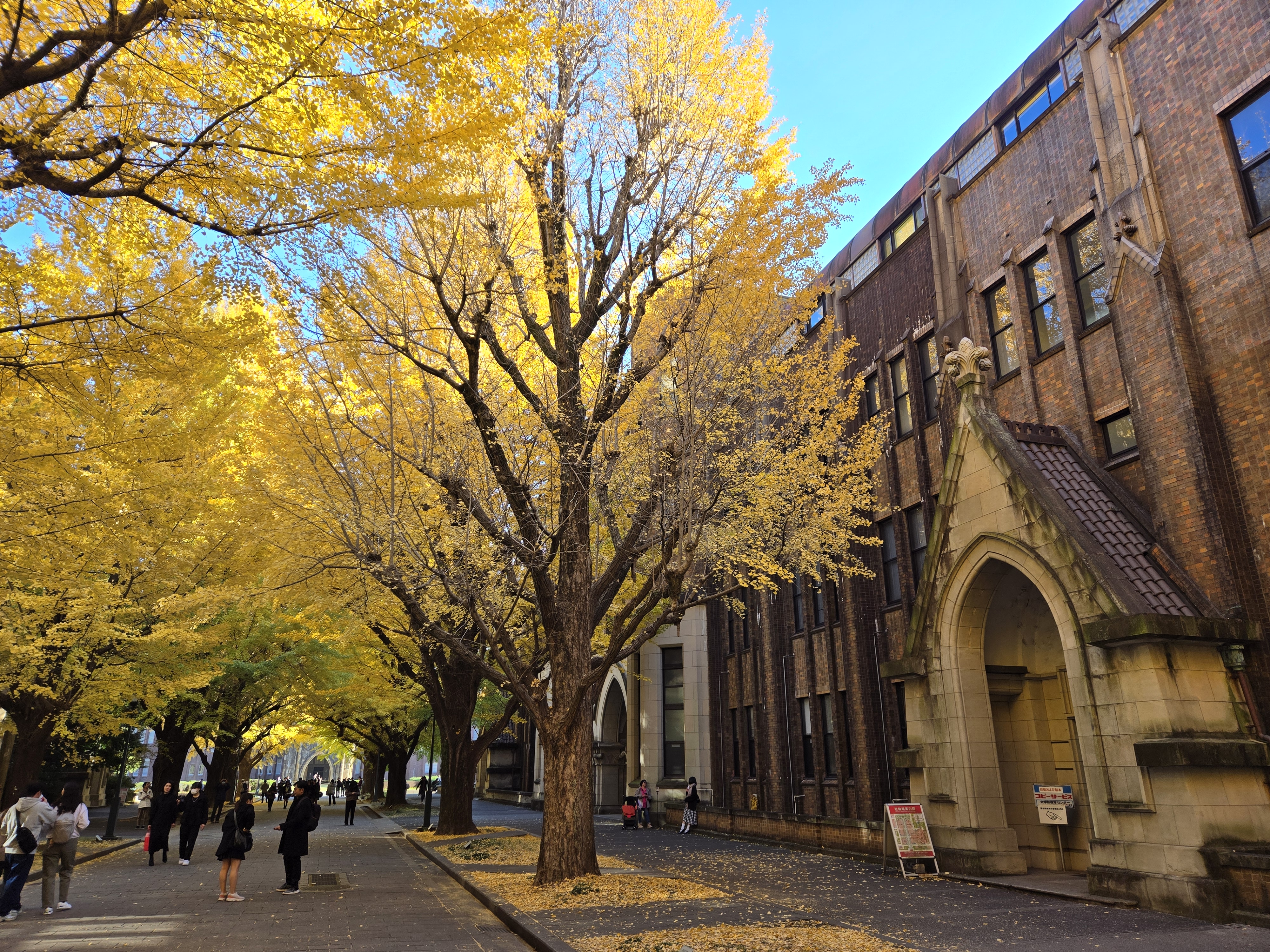 東京大學的秋景,金黃銀杏與古蹟建築相得益彰(王德合提供)