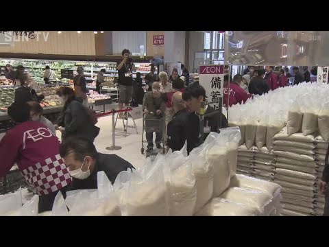 綜合日媒報導,位於大阪市西區的永旺大阪巨蛋城店2日上午7時55分一開門,隨即湧入大量欲搶購儲備米的人潮,甚至一度實施人流管制。