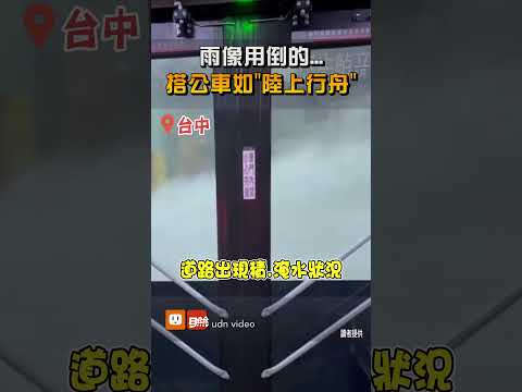 影/台中雨像用倒的...市民搭公車目擊「陸上行舟」