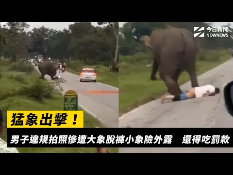 影/猛象出擊!男子違規拍照慘遭大象脫褲小象險外露 還得吃罰款
