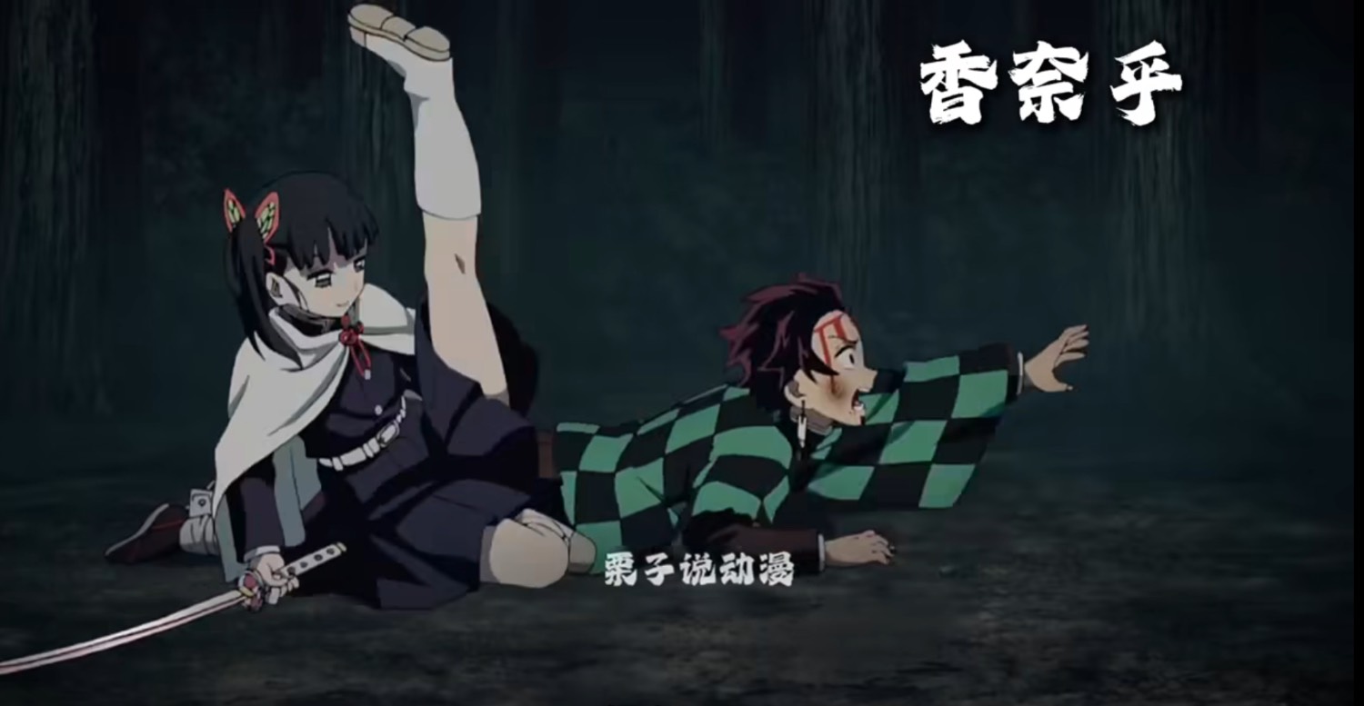 頭柱炭治郎唯ㄧ輸的ㄧ場就是被香奈乎的高筒靴敲暈…
