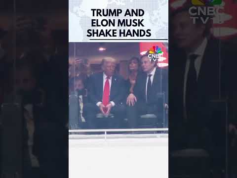 馬斯克坐了過來,川普轉頭與馬斯克握手,還聊了幾句,馬斯克才離開。