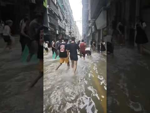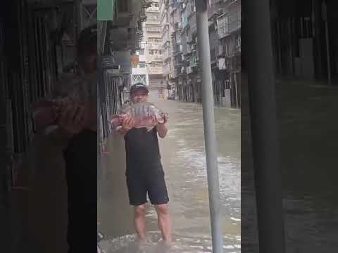 颱風樺加沙 - 走魚呀,快d捉呀!#颱風 #澳門 #洪水 #走魚 #追呀