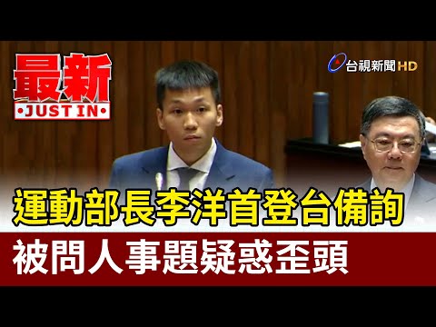 運動部長李洋首登台備詢!被問人事題他疑惑歪頭 卓揆救場幫忙解釋 運動部長李洋今(7)天首度在國會接受立委質詢,被問到運動部人事獨大問題,他一度疑惑歪頭,還曝光校名,而李洋回答完後行政院長卓榮泰還特地出面救場。對於經費計劃不明、花東運動資源投入,李洋也一一承諾。國民黨立委林倩綺質疑運動部「人事獨大」,因過去都是國體大、台師大、北市大、台體大與各..... ...