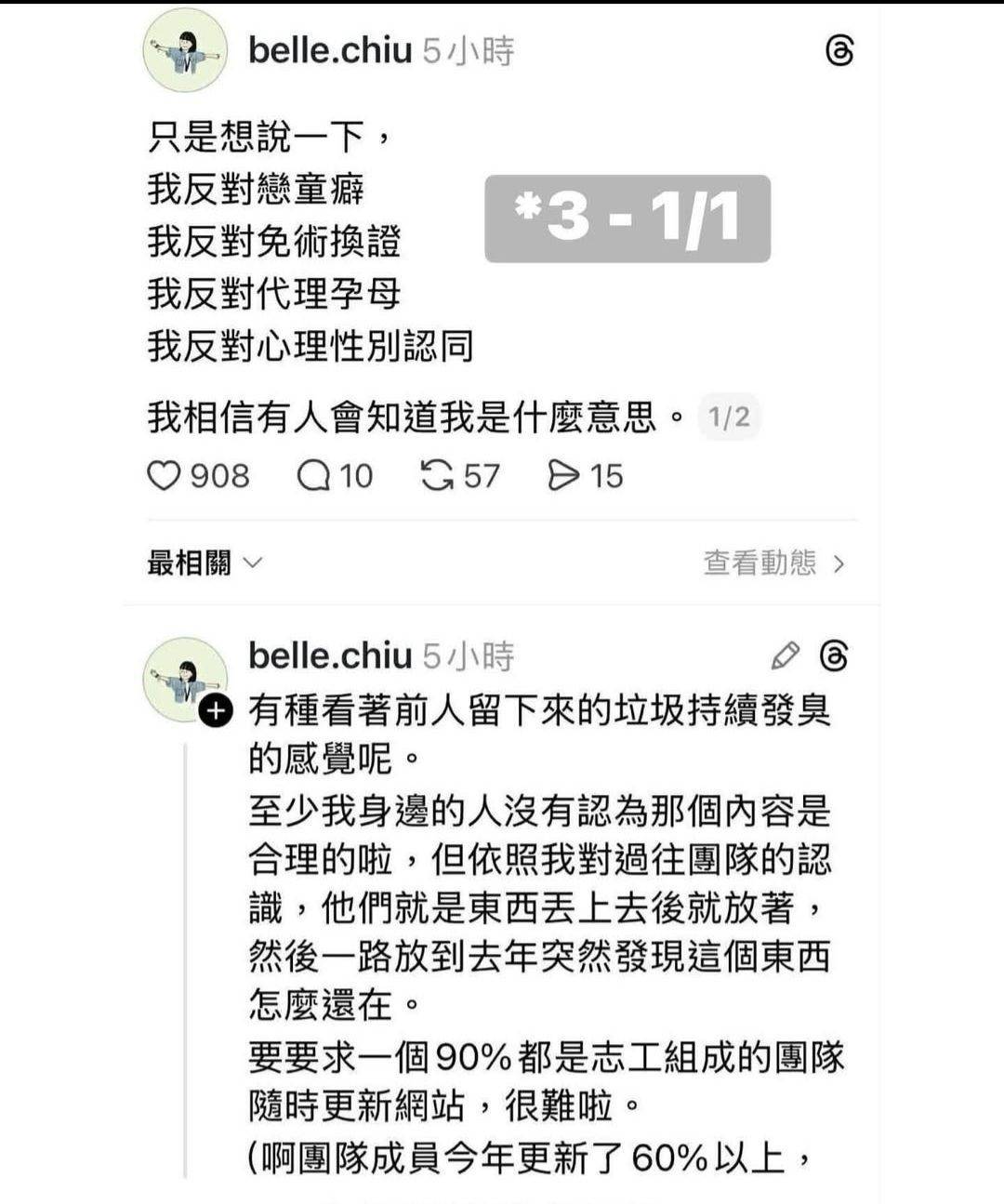 的工作人員為協會正職員工,但因事發場域是於其個人Threads頁面,在未經告知及許可