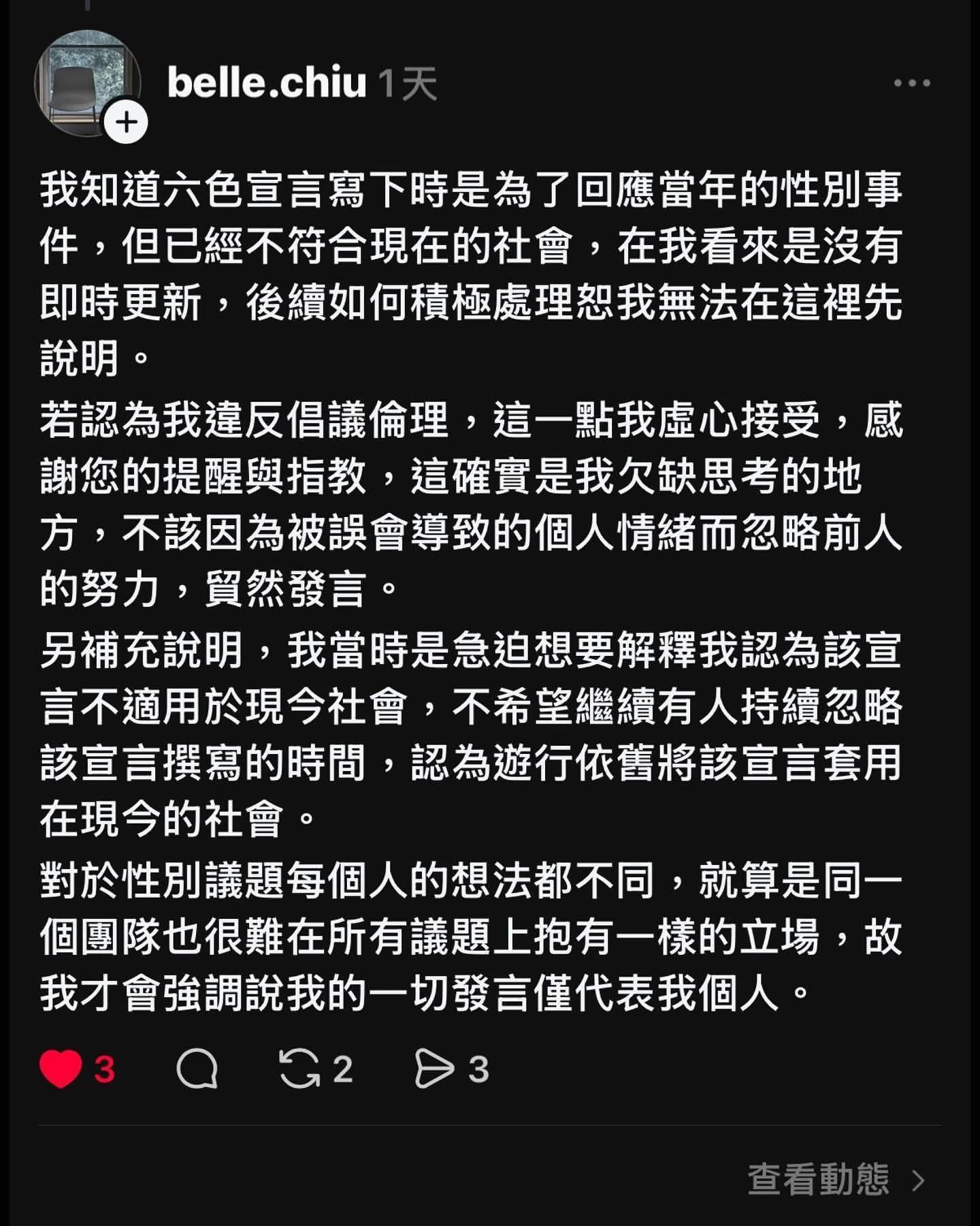 Threads上發表爭議言論、反對跨性別者,引發許多關心性別議題的支持者不滿。