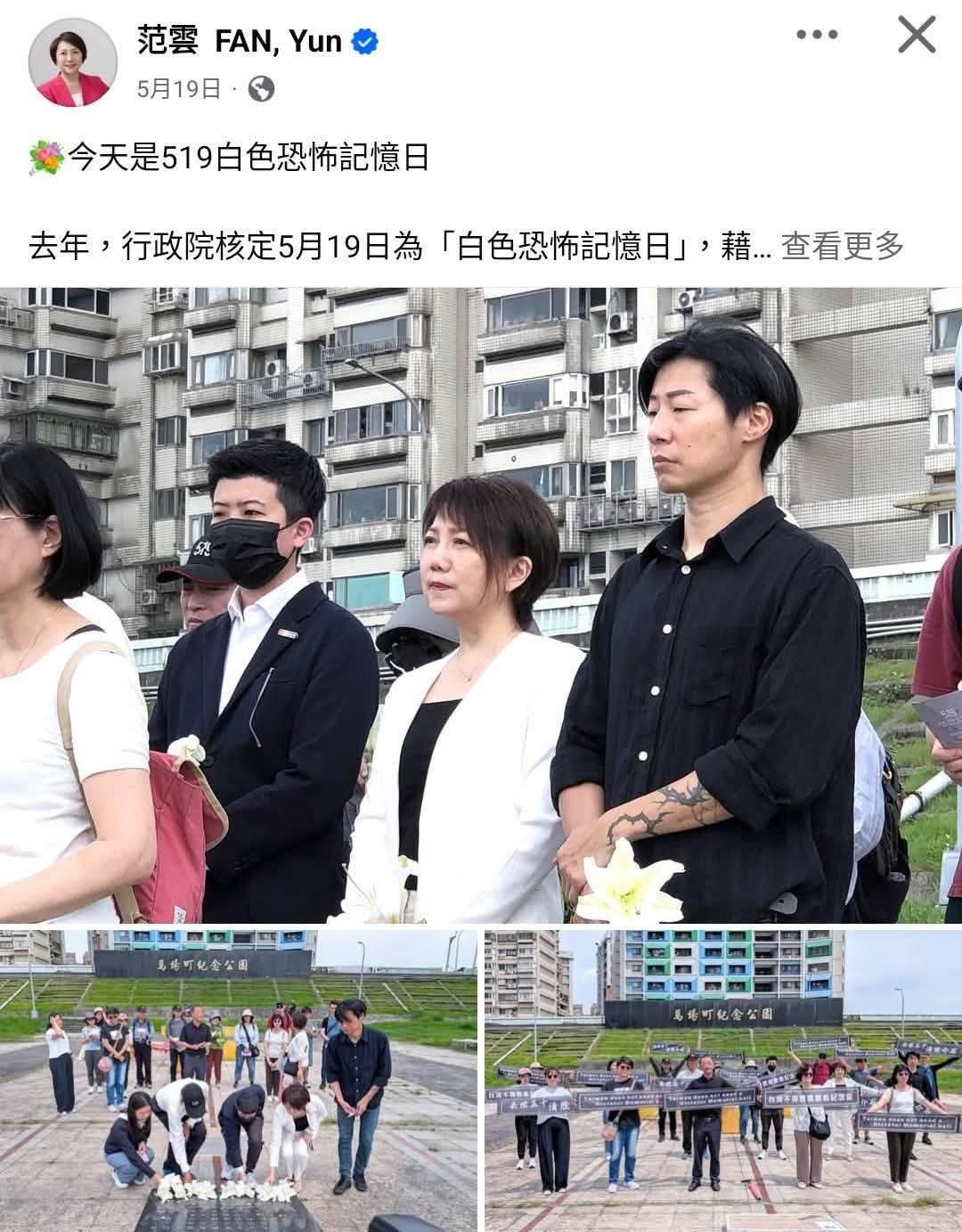 並附上范雲、苗博雅等人前往馬場町獻花的照片,問道:「他們獻花時,是否曾在馬場町