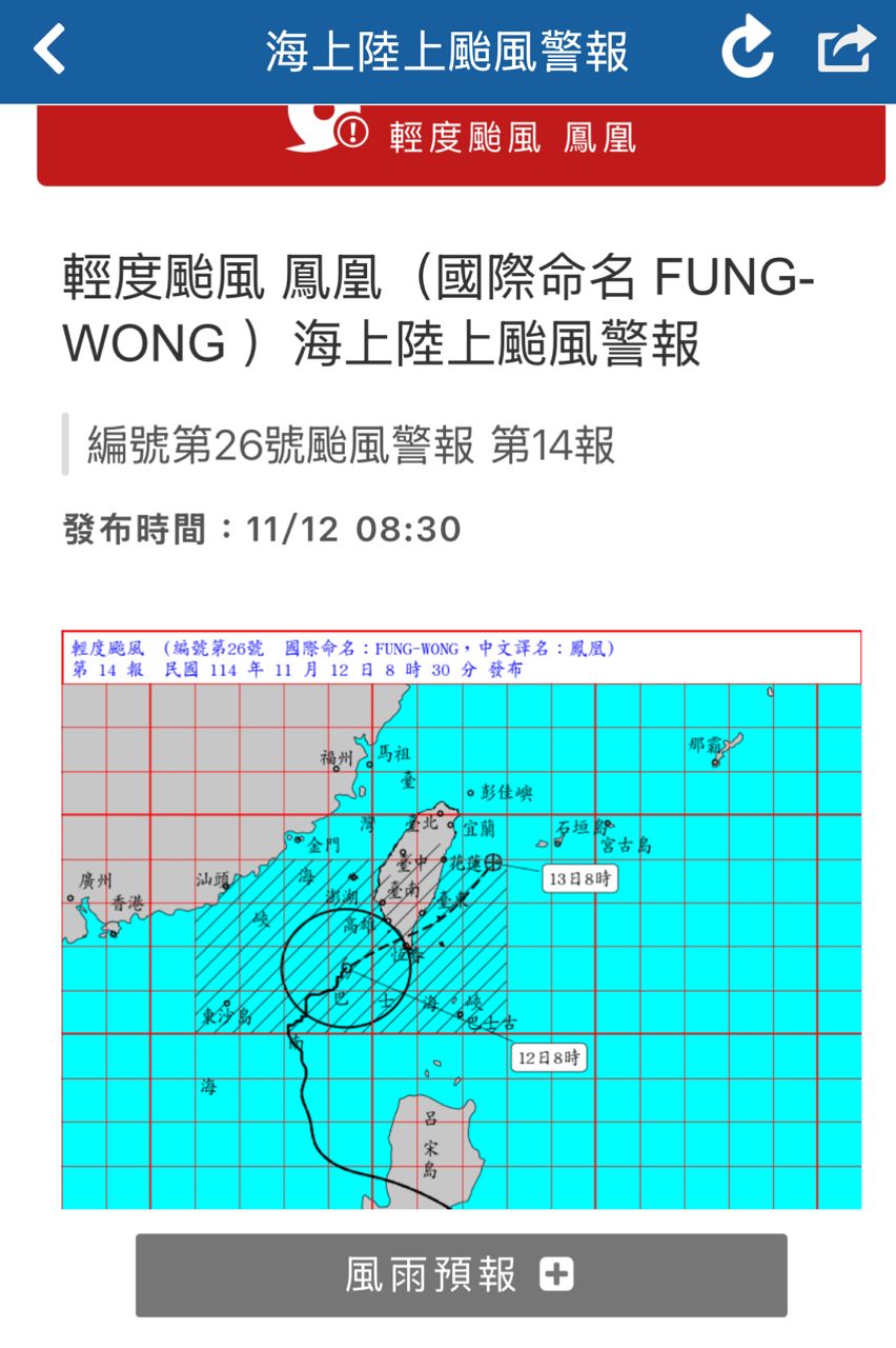 → johnhmj: 。。。都散開了還算颱風嗎?7F 49.216.86.34 台灣 11/12 09:06