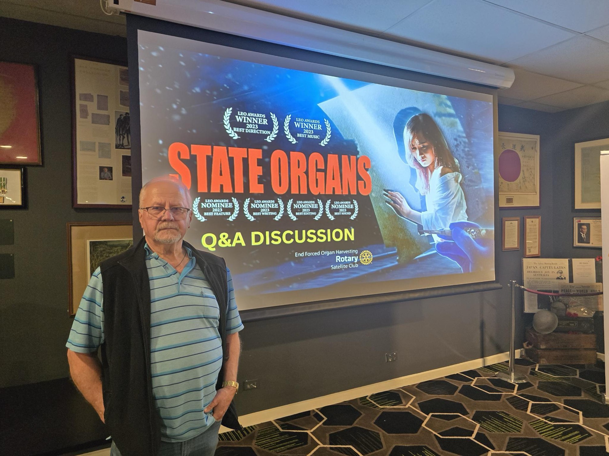 電影《國有器官》,在澳洲墨爾本Montmorency Eltham退伍軍人協會(RSL)放映。
