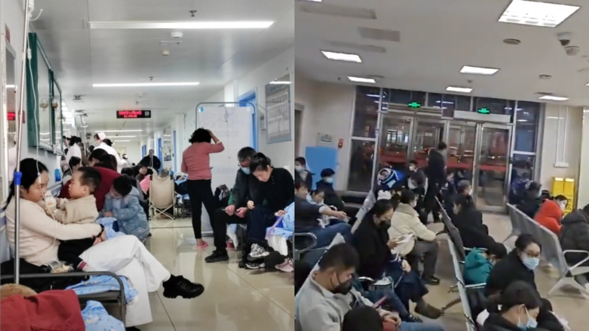近期,中國多地兒童醫院擠滿發燒患者,民眾直言,這是瘟疫。(視頻截圖合成)