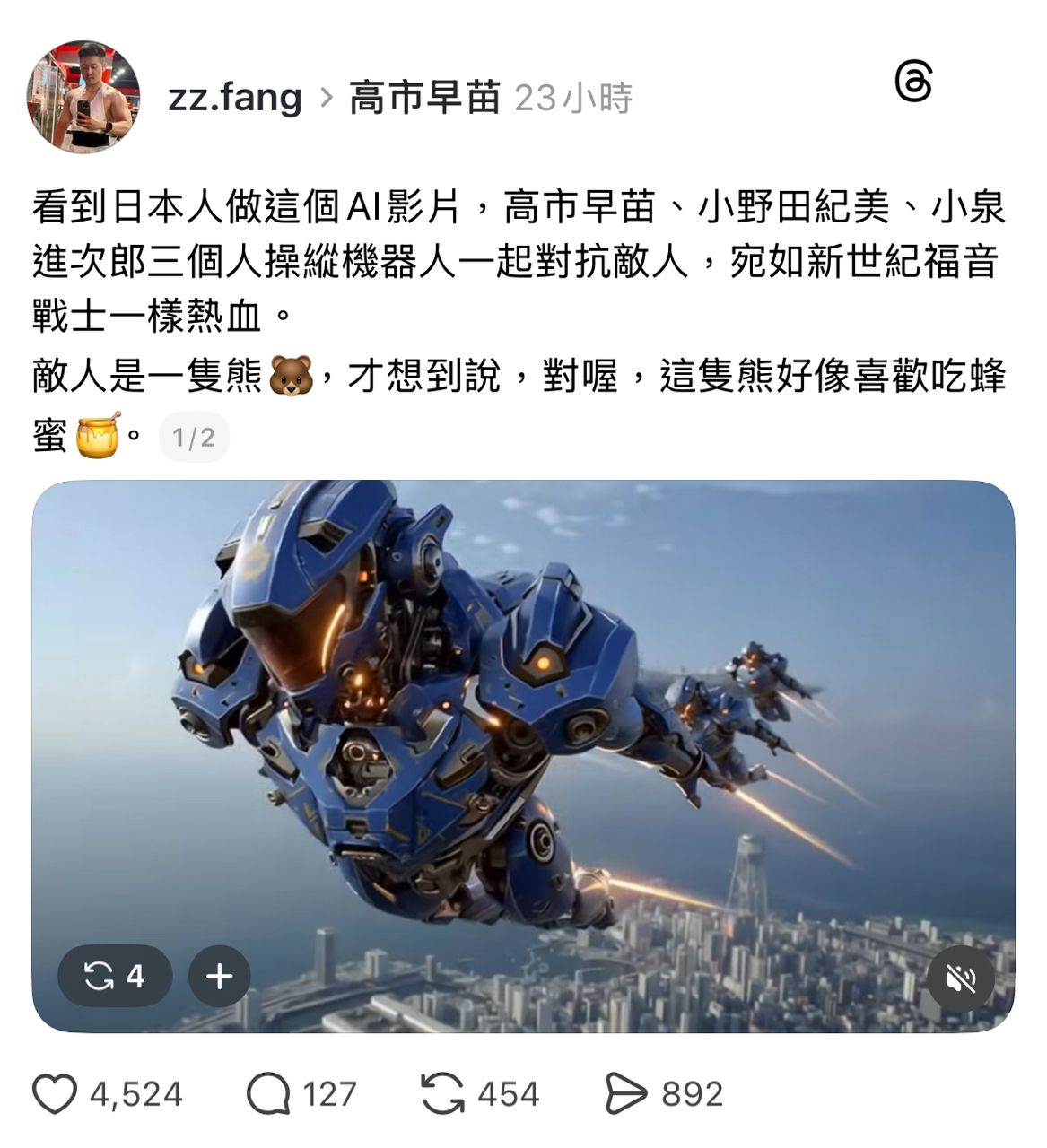 連做個AI影片都那麼好看跟熱血
