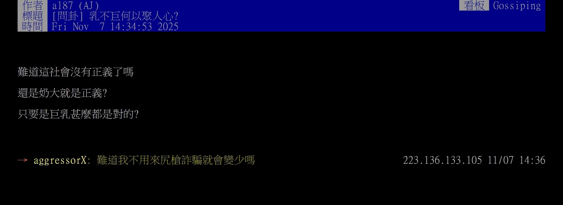 ※ 文章網址: https://www.ptt.cc/bbs/Gossiping/M.1764393346.A.71A.html