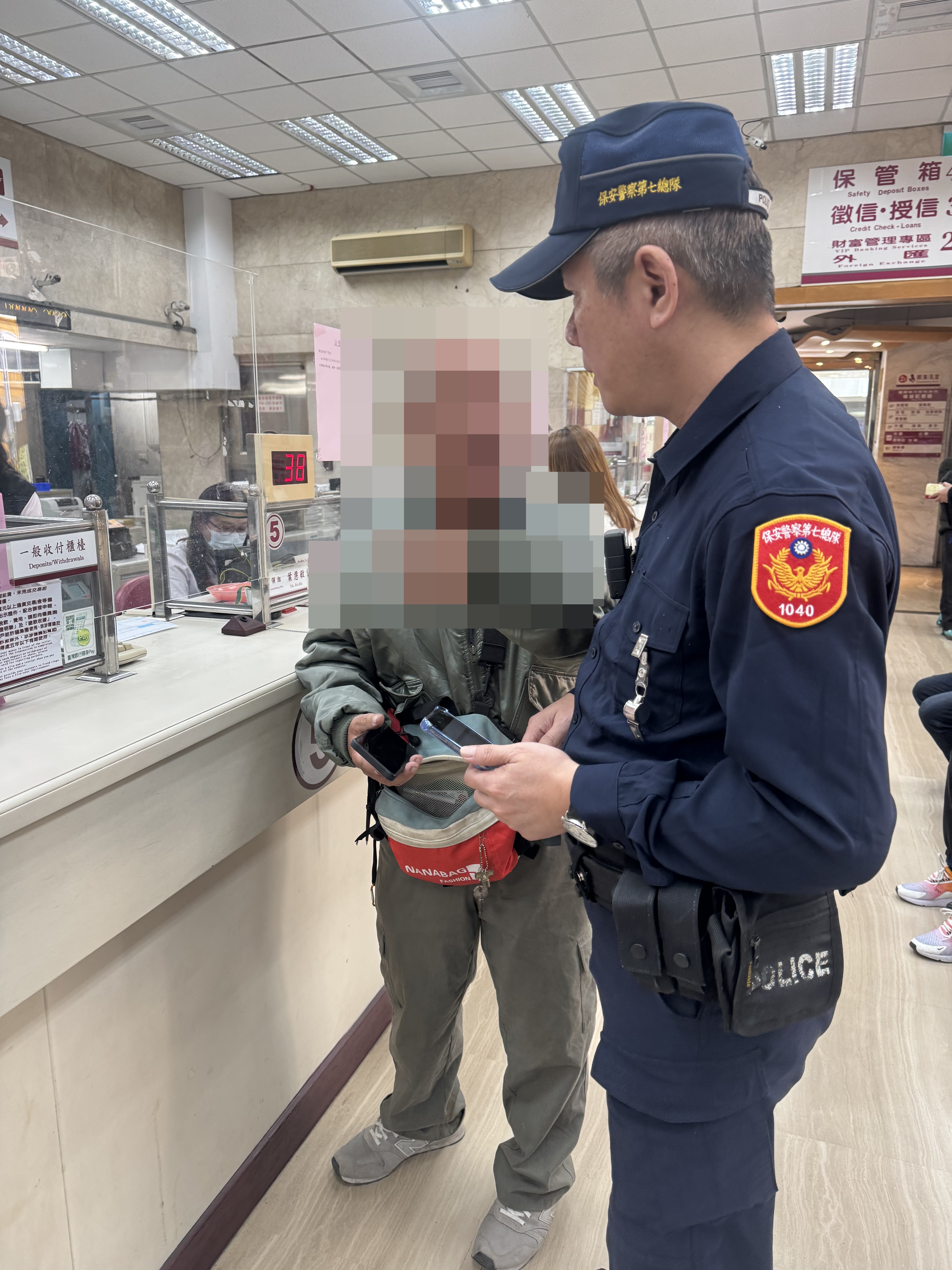 因神情異常緊張,引起該分行駐警保七總隊員警注意,上前關懷詢問。