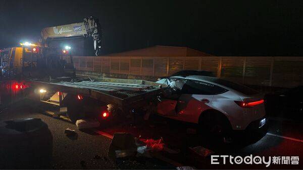 據了解,聯結車先追撞轎車,隨後後方一輛特斯拉疑似又不小心撞上,至於車禍原因還有