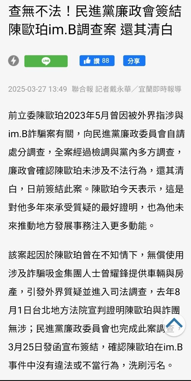 作者 KH8019 (MIB3)標題 [新聞] 檢抗告被駁回陳歐珀涉貪500萬交保戴電子時間 Tue Dec 9 23:35:02 2025