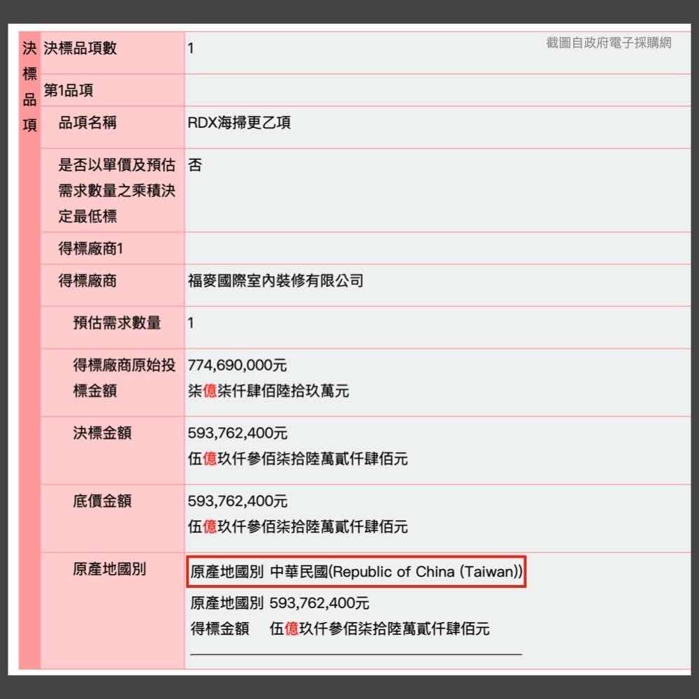 2、國防部說這家公司有做國際貿易,只要有輸出許可就可以承包。但是決標公告上的產