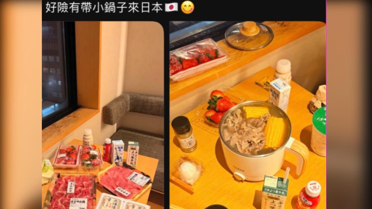 女網友在社群分享到日本飯店內煮火鍋的照片。(圖/翻攝threads)