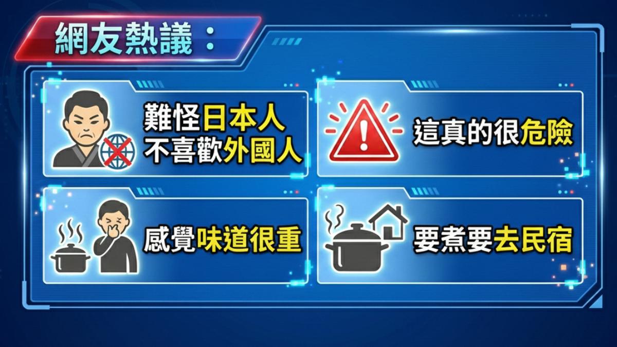 台灣女網紅在日本飯店房間內自備快煮鍋煮火鍋,引發台日網友強烈批評,直指「丟臉丟到國外」!專家解釋,房間內都設有煙霧感應器,一旦觸發,整棟建築警報大響,旅客恐面臨罰款,還會驚動其他房客。旅遊達人也提醒,日本飯店多嚴格禁止在房內使用自帶炊具,違規者可能被加收清潔費。專家呼籲應尊重住宿規定,「房間內煮火鍋 ...