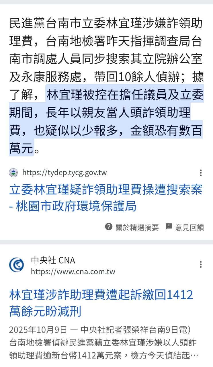 後面還有林穎孟/顏寬恒/林宜瑾一堆人,一樣是助理費被判等進去,同樣標準,是不是都無罪,真可笑。