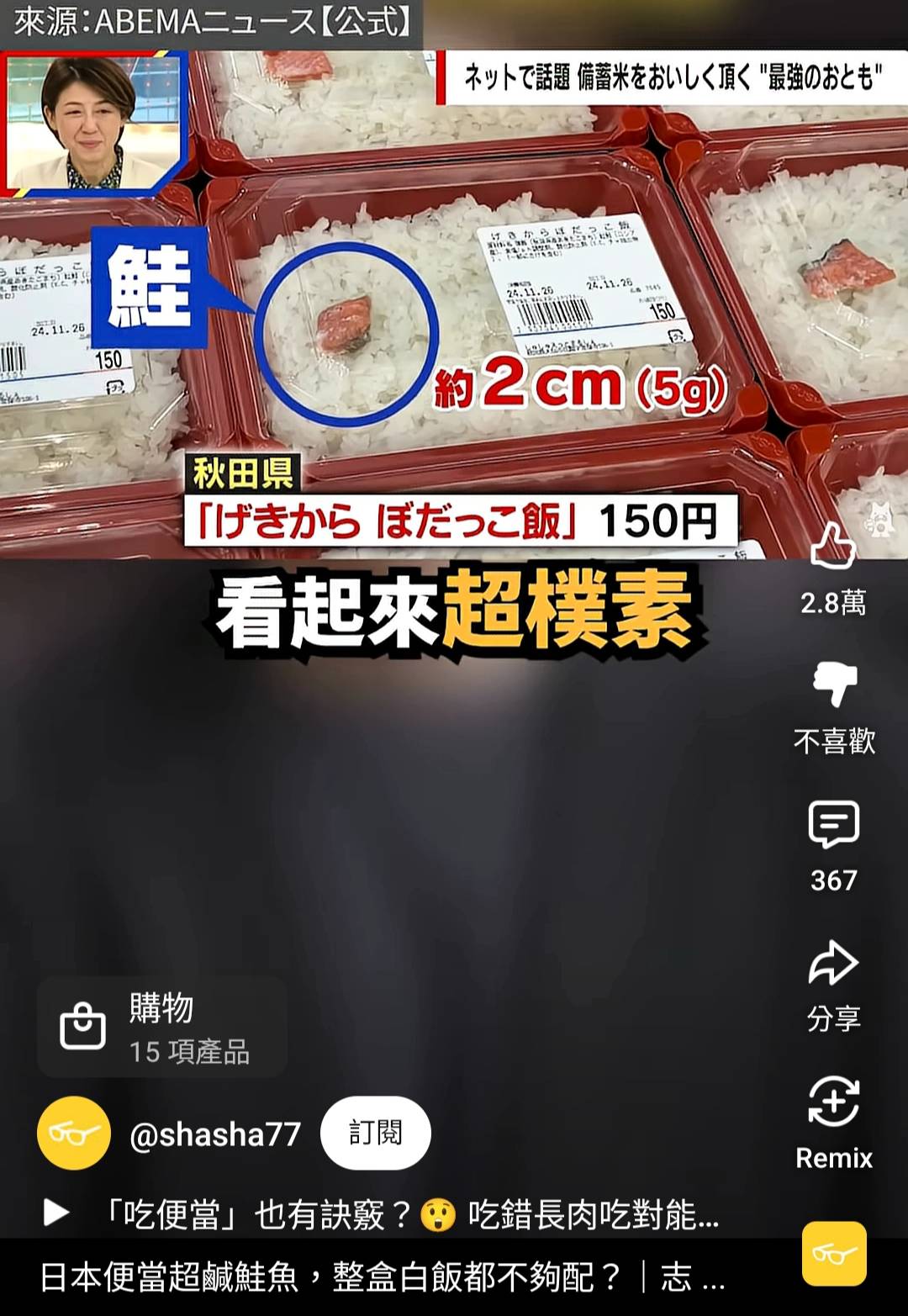 自欺欺七這期的短視頻討論這種超鹹的鮭魚放在一大盒白飯 根本媲美日本國旗便當了