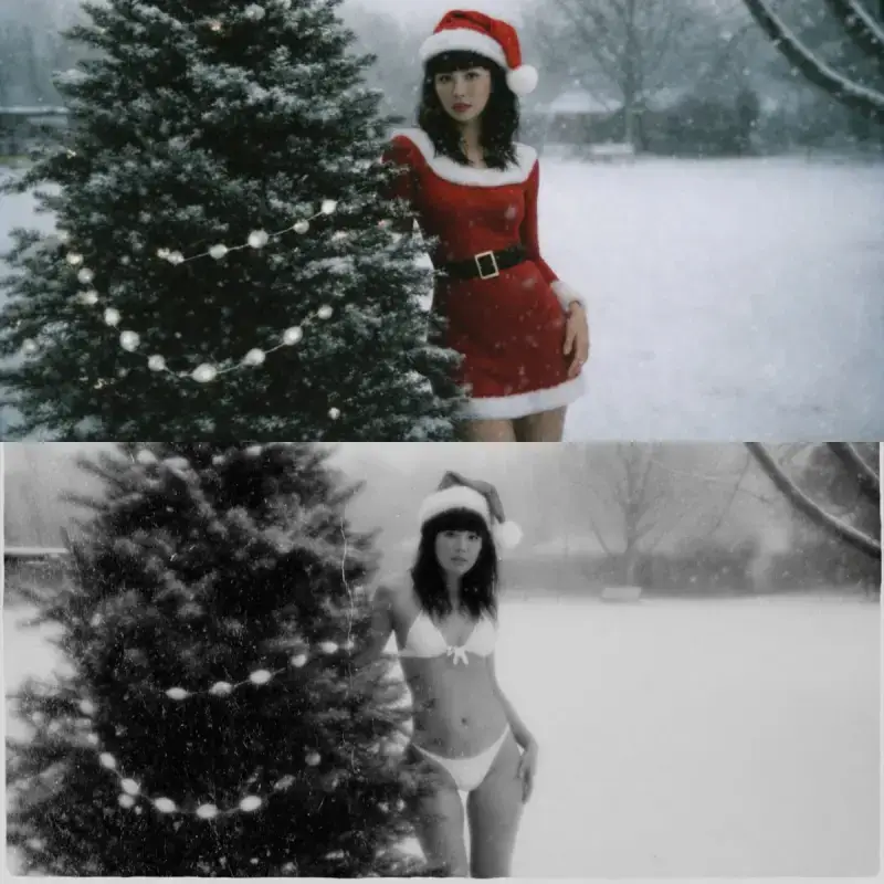 昨天,魏如萱在粉專宣傳《聖誕的珍珠》快閃活動,附上兩張應景的雪地美照,第一張她穿全套聖誕辣妹裝,只有小露蜜大腿,沒想到,下一張換穿白色綁帶比基尼,只有頭上的聖誕帽還留著,勻稱的體態和大腿根一覽無遺,可見年屆不惑的她身材維持得還不錯。