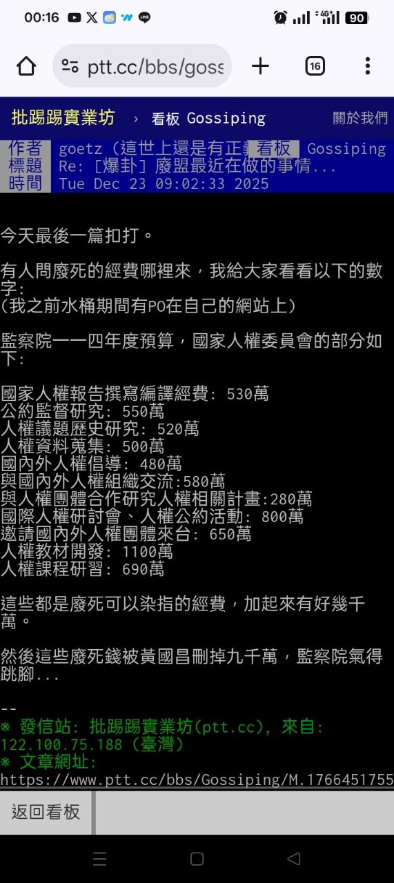 ※ 文章網址: https://www.ptt.cc/bbs/Gossiping/M.1766597481.A.2ED.html