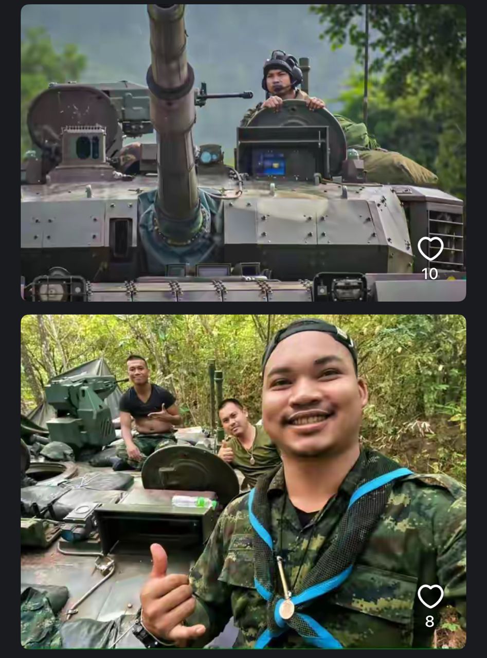 : 第二張照片此前已獲泰國陸軍證實。軍方稱,這輛坦克的主炮自開戰以來共發射了約20