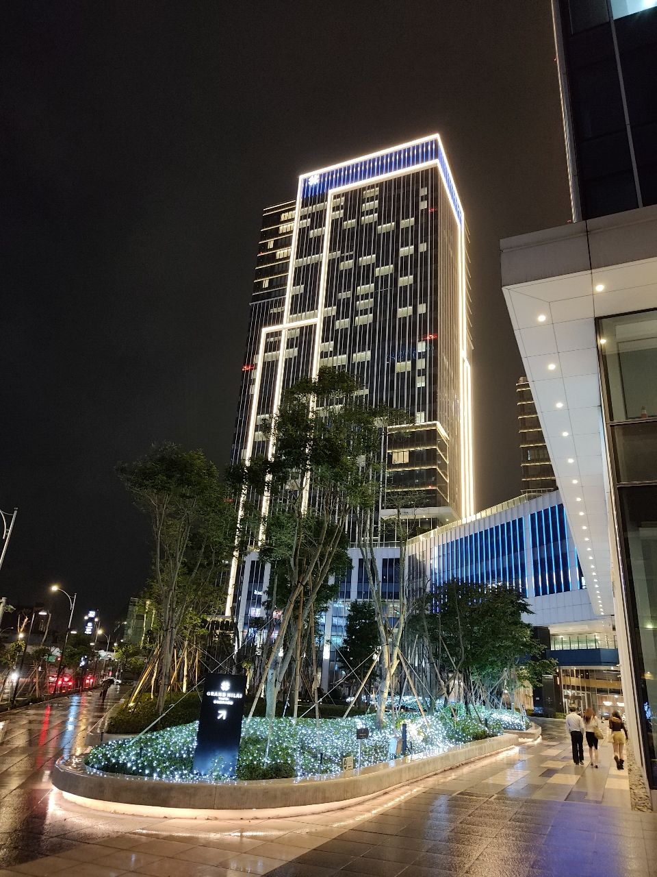 ,下面草地燈光很漂亮