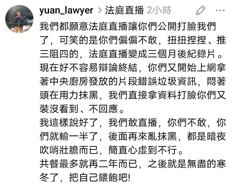 Re: [問卦] 鄭深元律師脆嗆爆:我們敢直播你們不敢