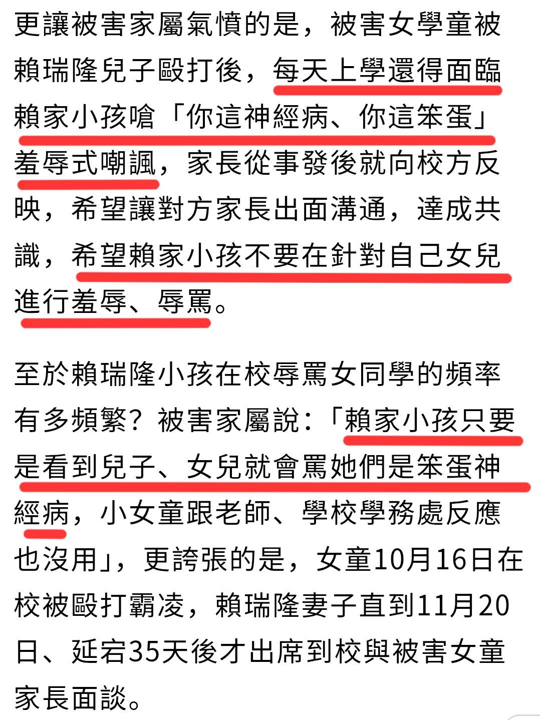 反應給賴氏夫妻卻還是放縱賴兒羞辱受害子女