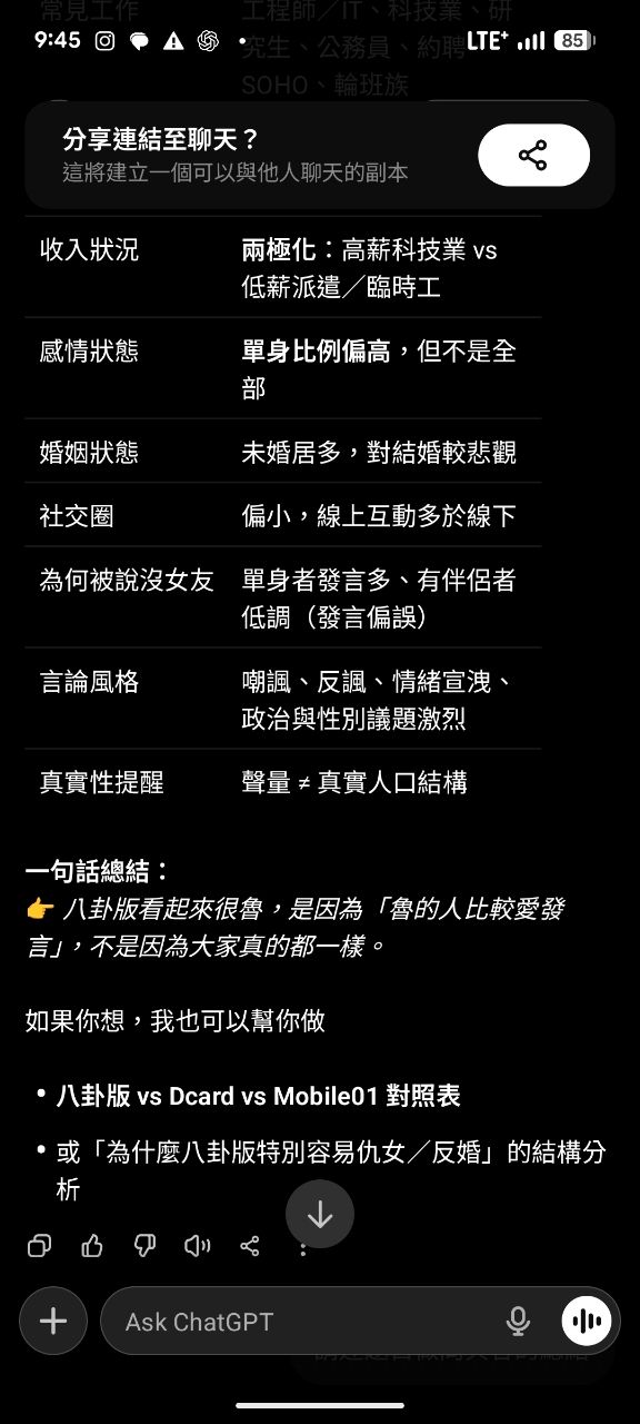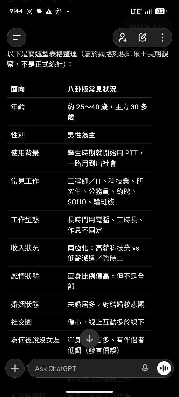 *比如問八卦版用戶年齡,沒女友是真的嗎: